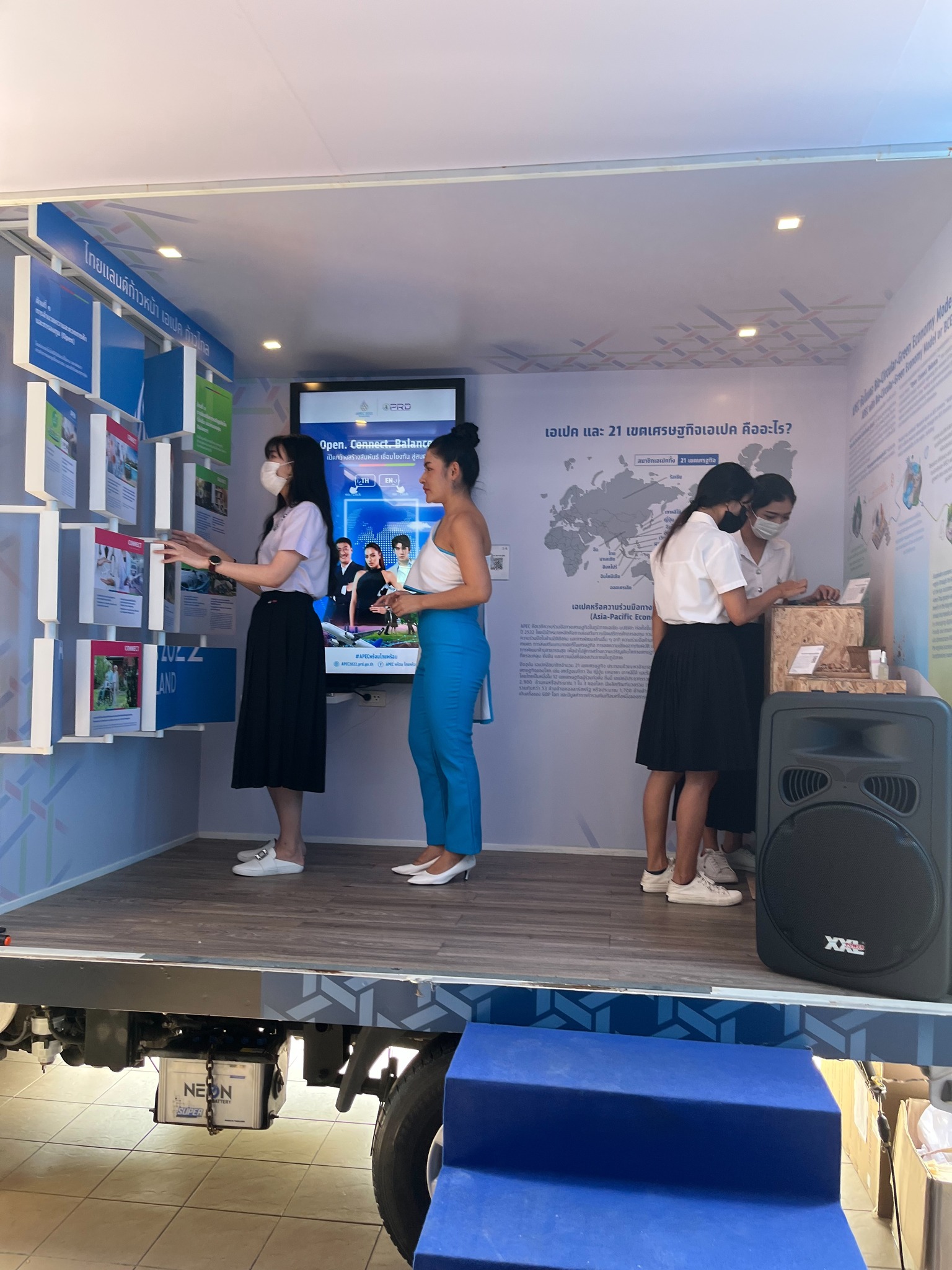 นักศึกษานิติศาสตร์เข้าร่วมชมกิจกรรมของรถนิทรรศการ APEC 2022 สัญจร “APEC พร้อม ไทยพร้อม” ภายใต้แนวคิด Open. Connect. Balance. หรือ “เปิดกว้างสร้างสัมพันธ์ เชื่อมโยงกัน สู่สมดุล” ณ โรงอาหารช่อประดู่ มหาวิทยาลัยวลัยลักษณ์ เมื่อวันอังคารที่ 11 ตุลาคม 2565 ที่ผ่านมา