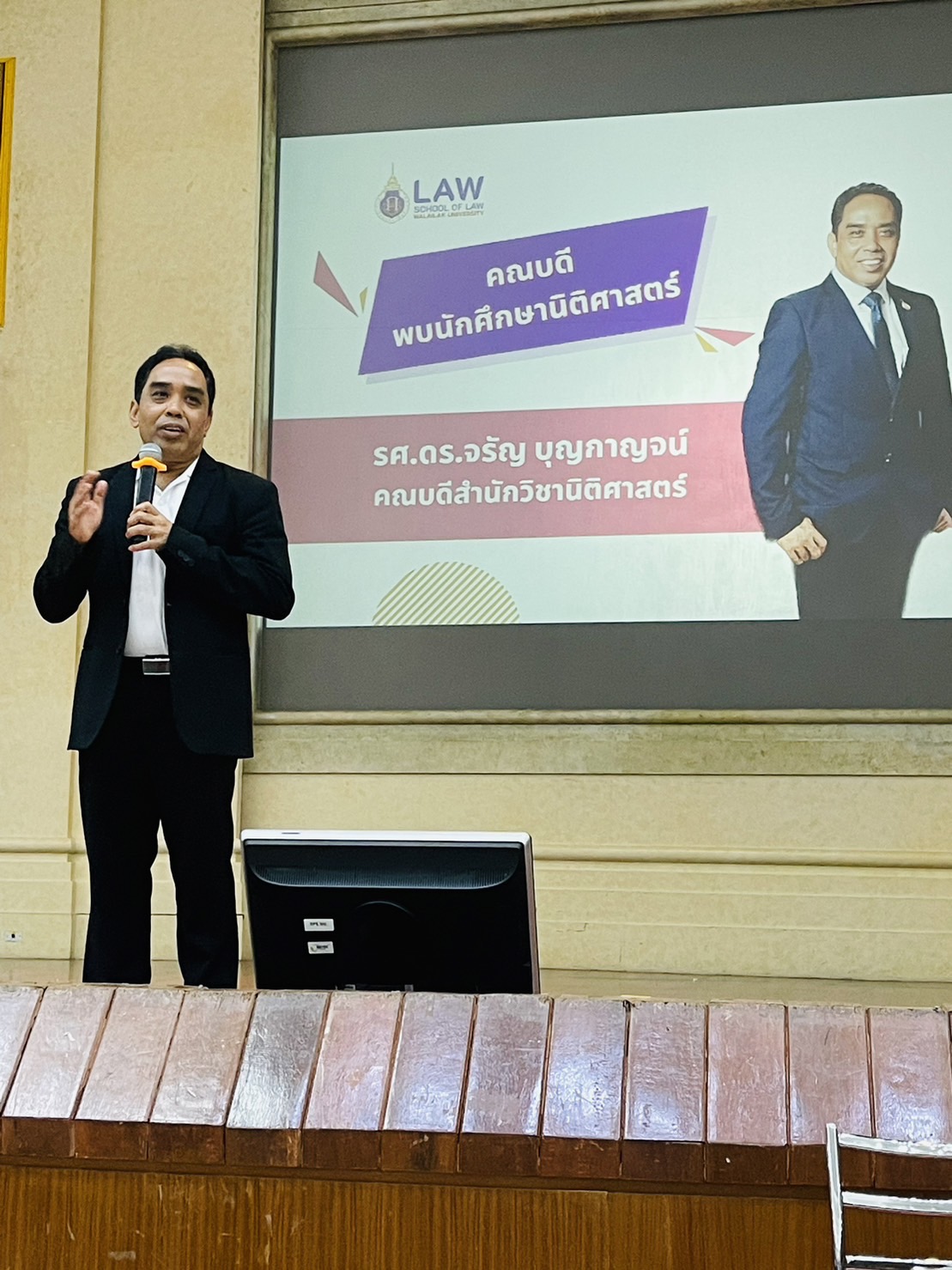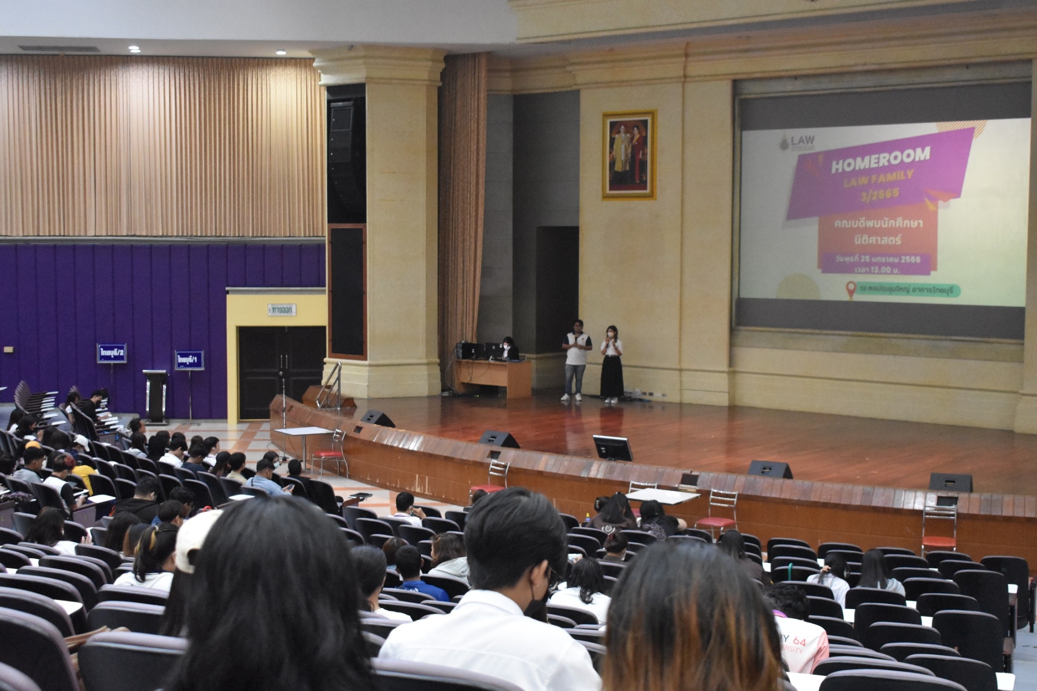 เมื่อวันที่ 25 มกราคม 2566 ที่ผ่านมา สำนักวิชานิติศาสตร์ ได้จัดกิจกรรม Homeroom LAW Family ประจำภาคการศึกษา 3/2565 โดยได้รับเกียรติจาก รศ.ดร.จรัญ บุญกาญจน์ รักษาการแทนคณบดี พบนักศึกษาและให้โอวาท ในการเรียนและการทำกิจกรรม แก่นักศึกษาทั้ง 4 ชั้นปี ในกิจกรรม “คณบดีพบนักศึกษา” นอกจากนี้ ยังมีกิจกรรมอื่นๆ ดังนี้