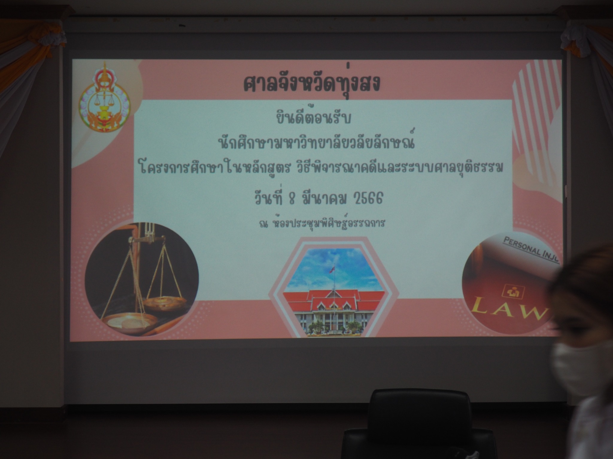 วันพุธที่ 8 มีนาคม 2566 หลักสูตรนิติศาสตร์ สำนักวิชานิติศาสตร์ มหาวิทยาลัยวลัยลักษณ์ ได้นำนักศึกษาเข้าศึกษาดูงาน ณ ศาลจังหวัดทุ่งสง ในรายวิชาพระธรรมนูญศาลยุติธรรมและระบบศาลไทย รายวิชาเอกเทศสัญญา2 และรายวิชากฎหมายลักษณะพยาน