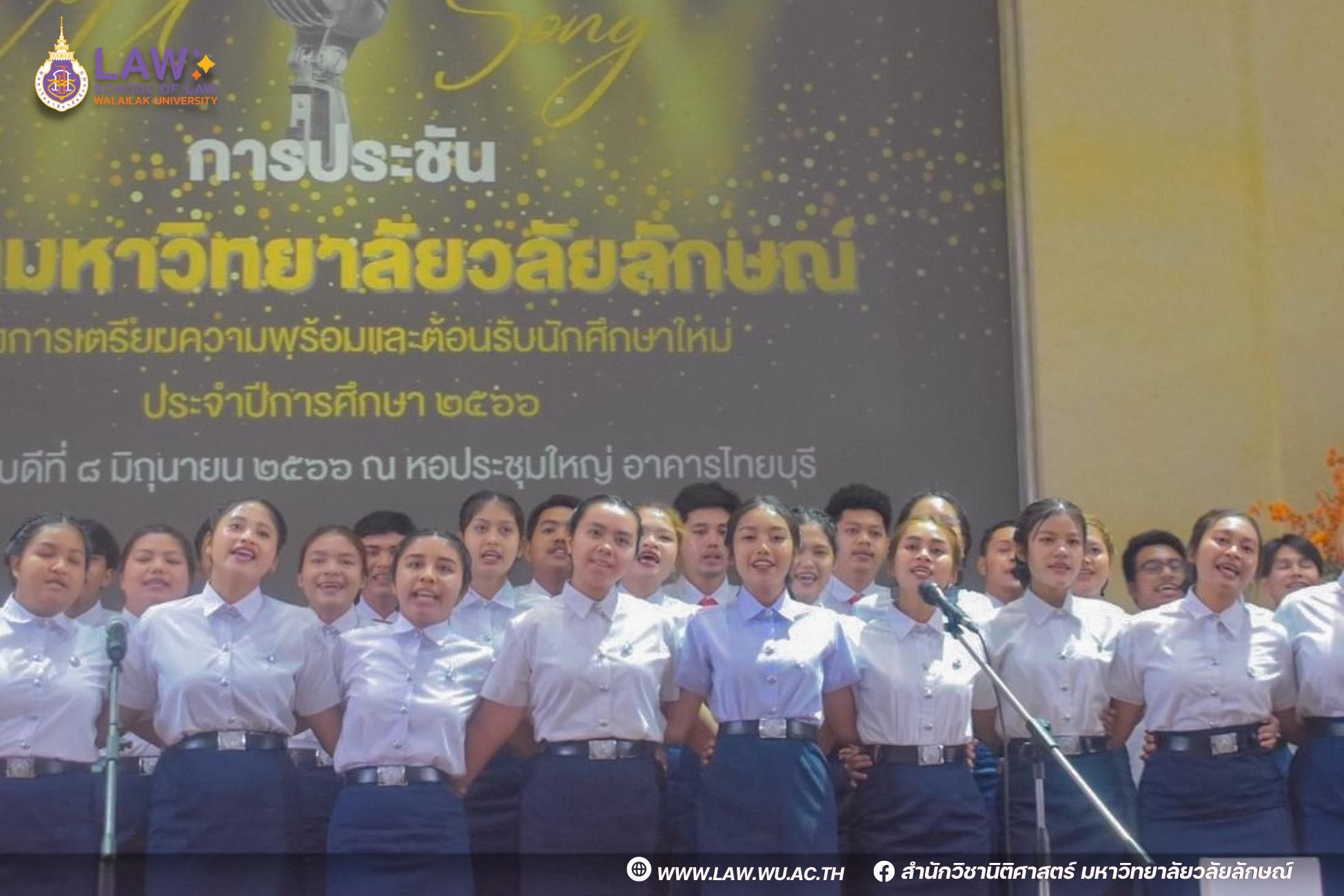 เมื่อวันที่ 8 มิถุนายน 2566 ที่ผ่านมา สำนักวิชานิติศาสตร์ มหาวิทยาลัยวลัยลักษณ์ เข้าร่วมการประชัน เพลงมหาวิทยาลัยวลัยลักษณ์ โดยมีนักศึกษาชั้นปีที่ 1 เข้าร่วมกิจกรรม ภายใต้โครงการเตรียมความพร้อมและต้อนรับนักศึกษาใหม่ประจำปีการศึกษา 2566 ณ หอประชุมใหญ่ อาคารไทยบุรี