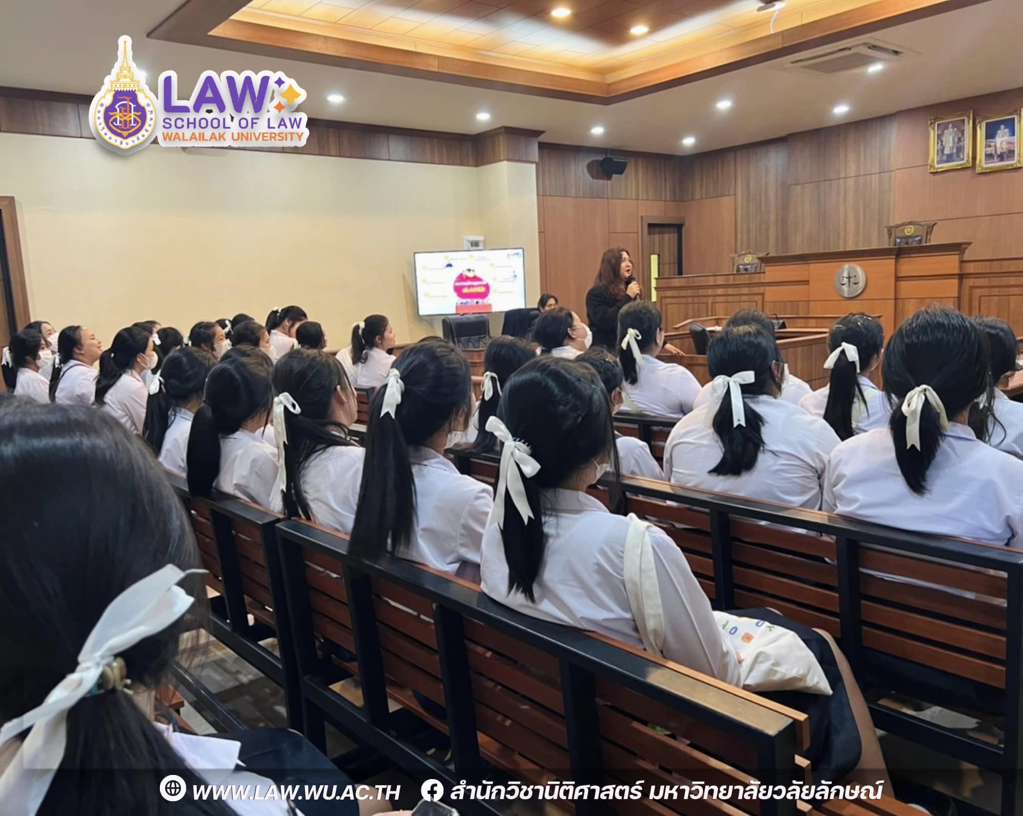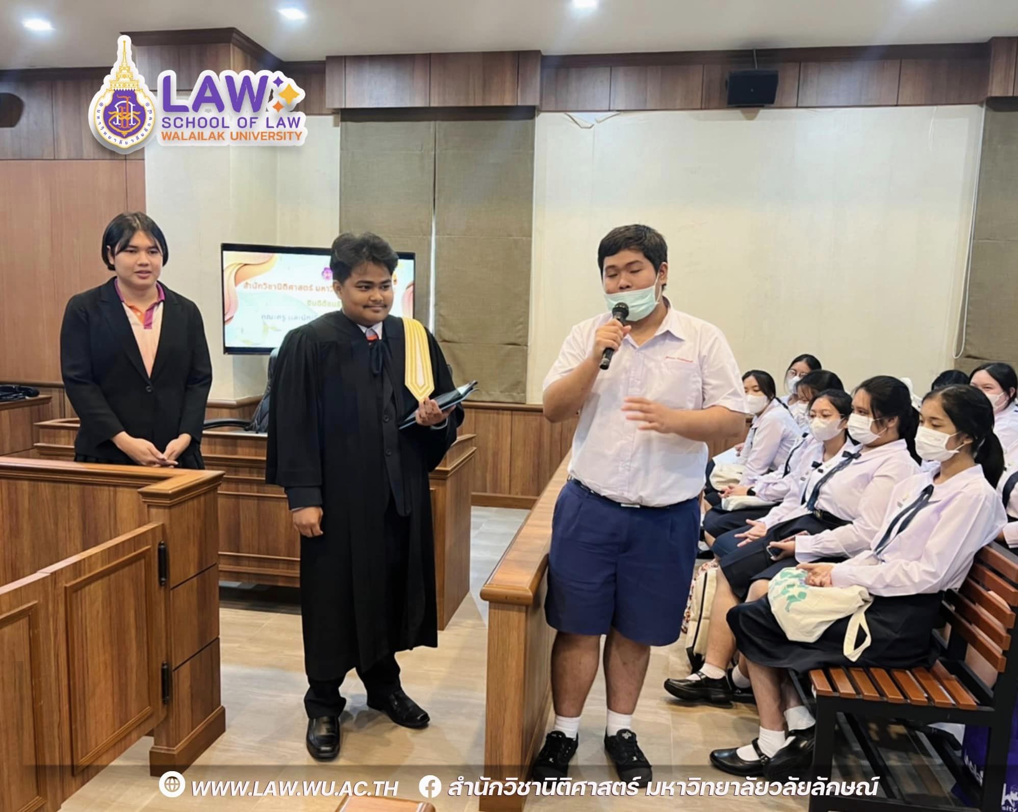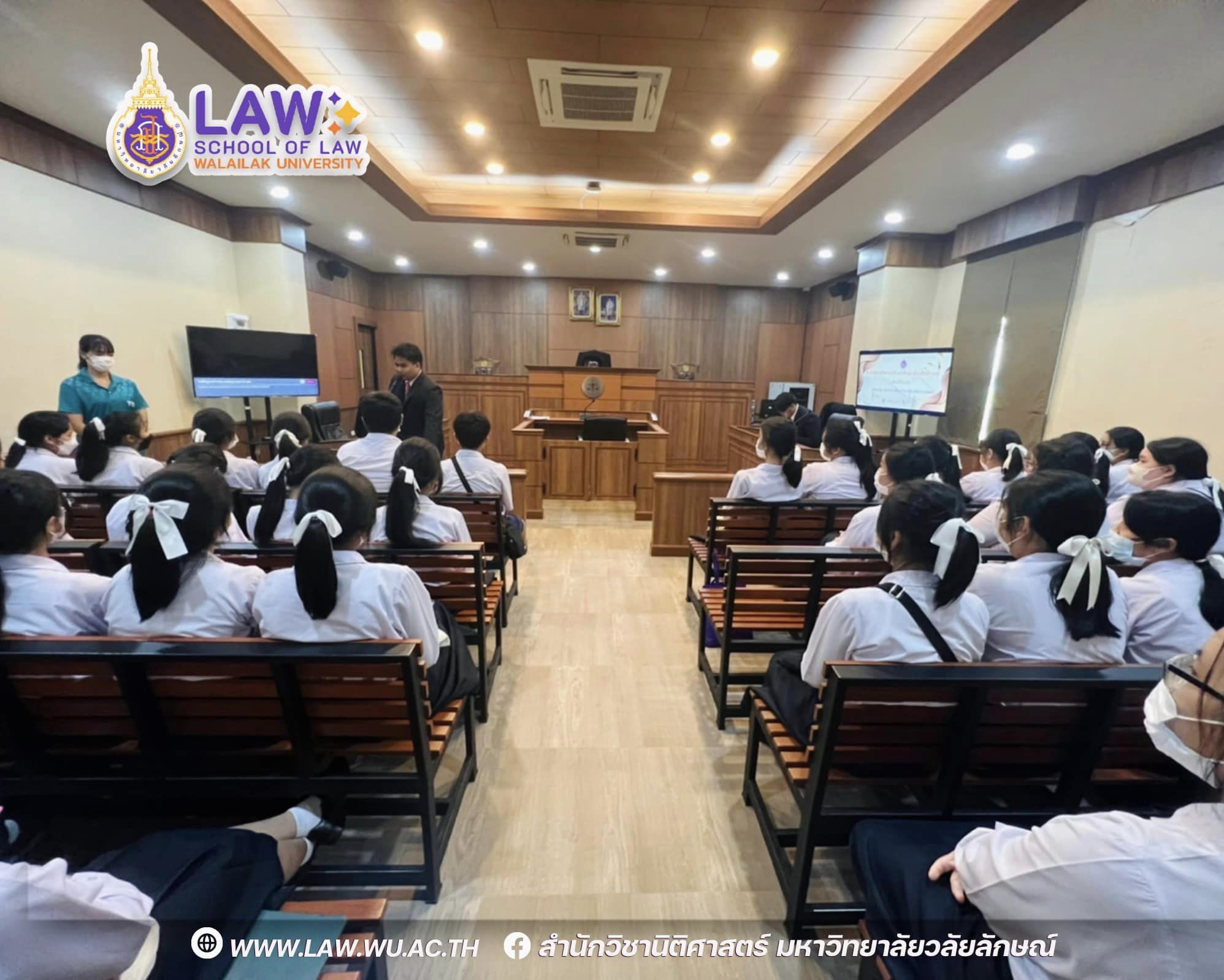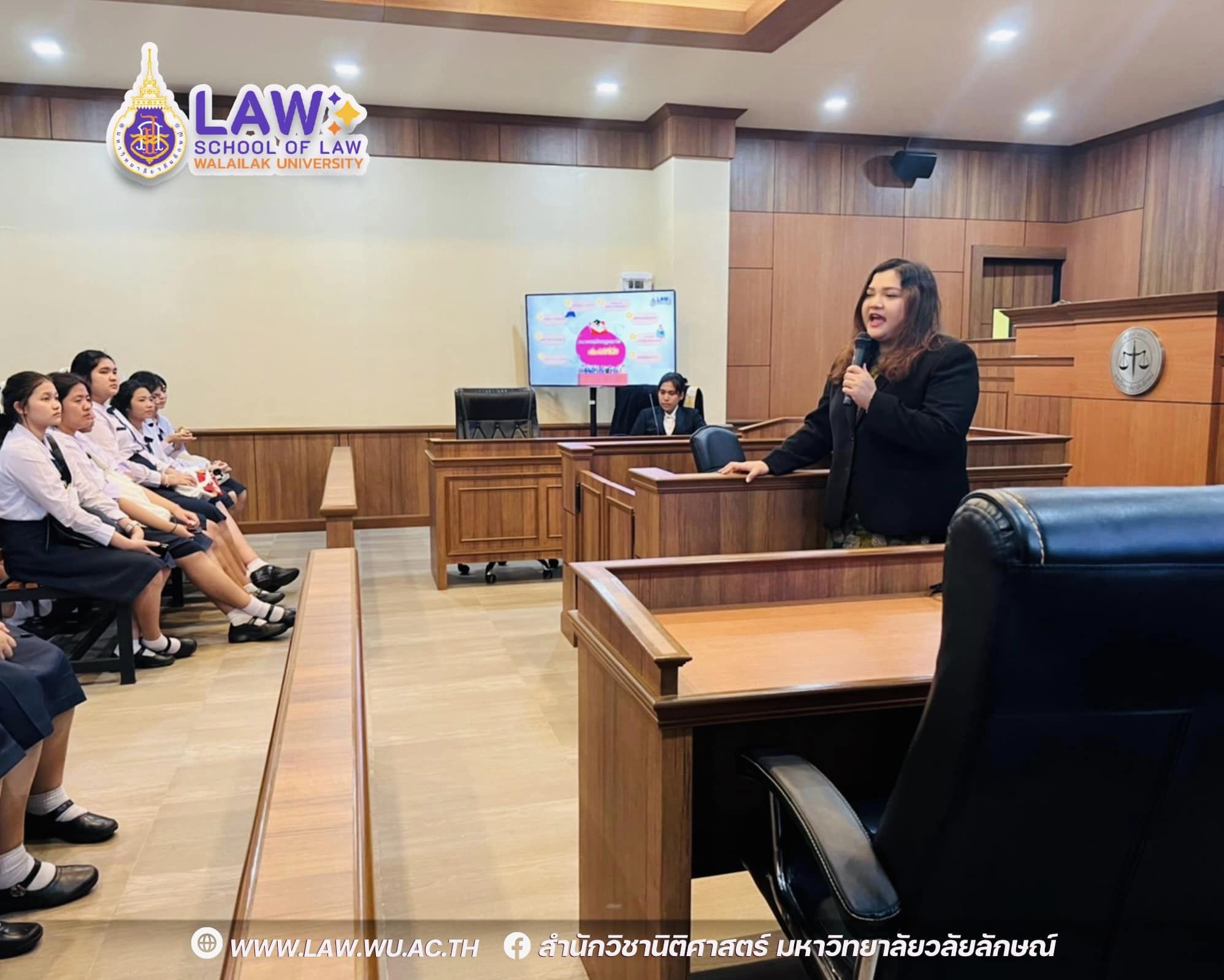 เมื่อวันที่ 3 กรกฎาคม 2566 ที่ผ่านมา ต้อนรับน้องๆมัธยมศึกษาดูงาน ณ ศาลจำลองนิติศาสตร์ มวล. สำนักวิชานิติศาสตร์ มหาวิทยาลัยวลัยลักษณ์ ให้การต้อนรับคณะครู นักเรียน โรงเรียนธิดาแม่พระ จังหวัดสุราษฎร์ธานี โดยอาจารย์ขวัญมณี มณีโชติ และตัวเเทนนักศึกษาสูตรนิติศาสตร์