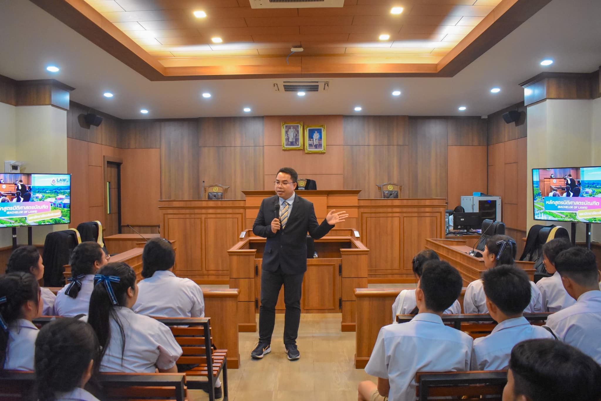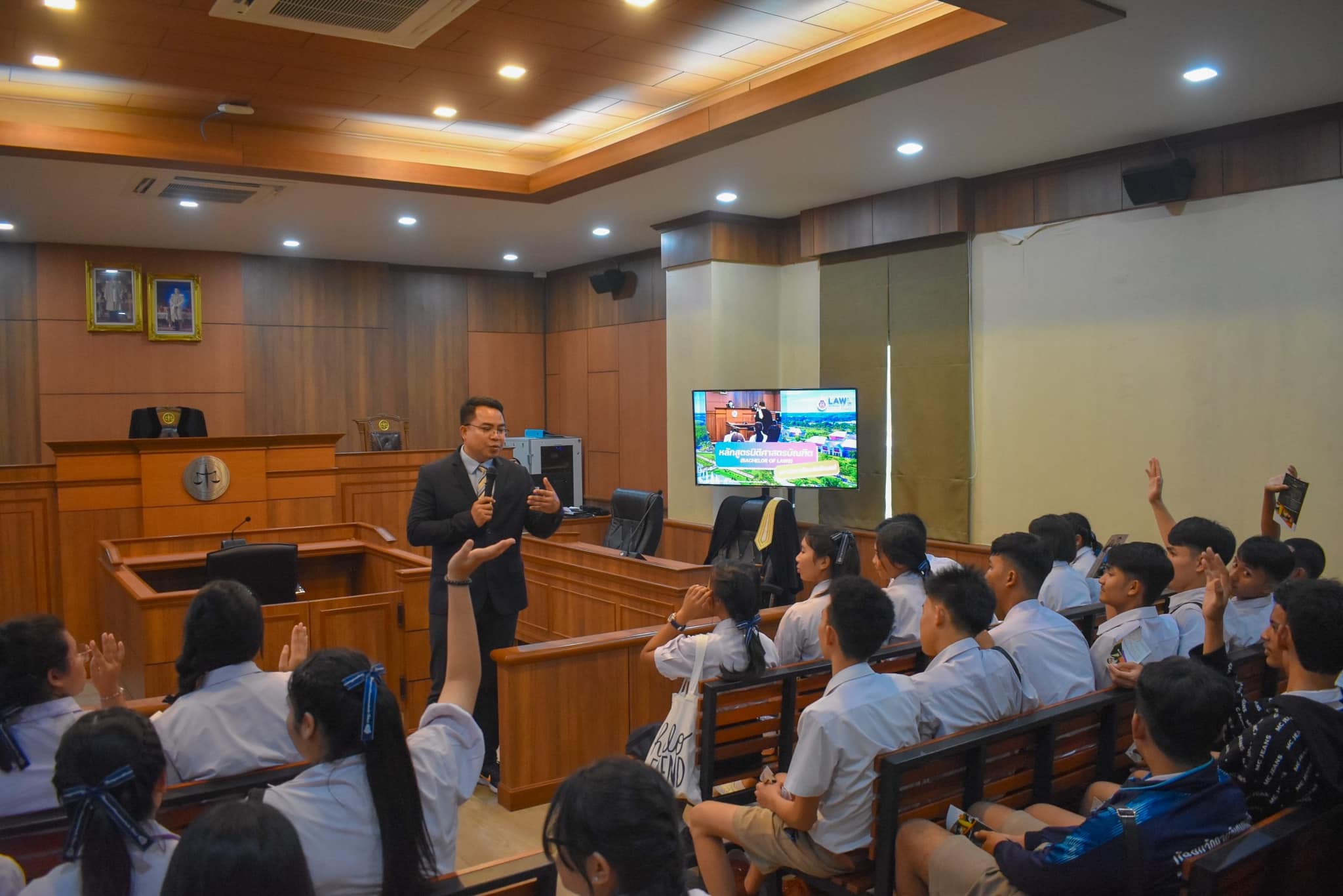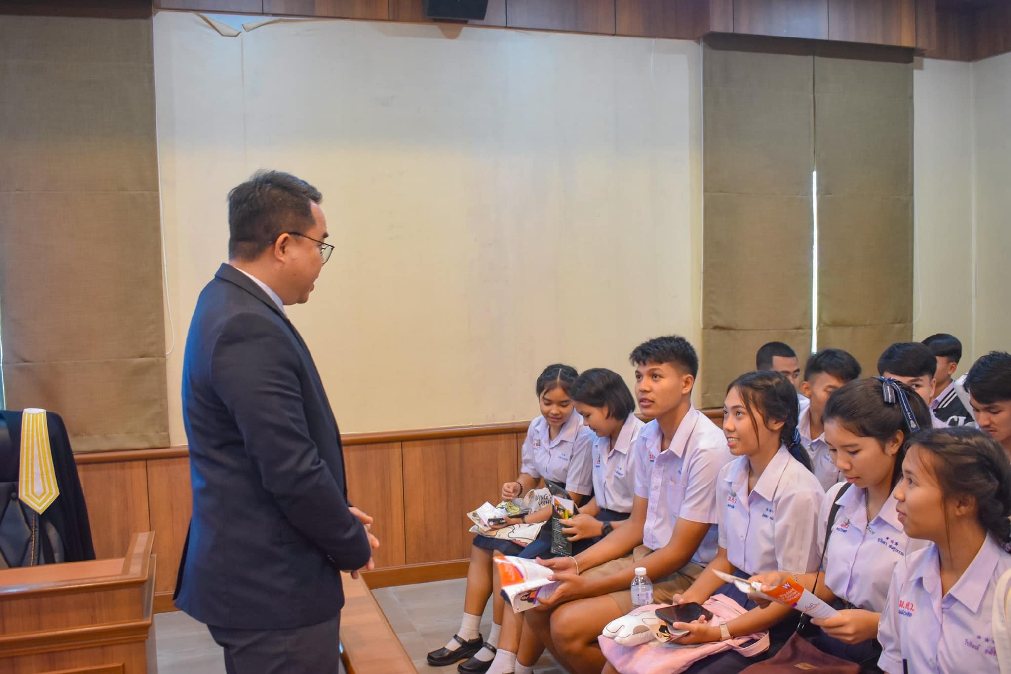 เมื่อวันที่ 1 กันยายน 2566 สำนักวิชานิติศาสตร์ นำโดย ผศ.ดร.วีระยุทธ ลาสงยาง อาจารย์ประจำหลักสูตรนิติศาสตร์ กล่าวต้อนรับ พร้อมทั้งประชาสัมพันธ์ แนะนำหลักสูตรการเรียนการสอน เเละข้อมูลการรับเข้าศึกษาต่อในระดับปริญญาตรีหลักสูตรนิติศาสตร์ เเก่น้องๆนักเรียนในระดับมัธยมศึกษาตอนปลาย จากโรงเรียนมัธยมวัดควนวิเศษมูลนิธิ จ.ตรัง