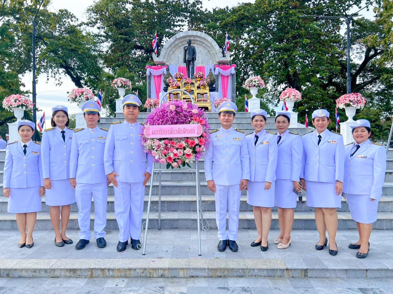 โดยมี รองอธิการบดี (รศ.ดร.ศราวุธ ปาลิโภชน์) เป็นผู้แทนมหาวิทยาลัยวลัยลักษณ์วางพวงมาลา พร้อมด้วยผศ.จินตนา อุณหะไวทยะ รักษาการแทนหัวหน้าสาขาวิชานิติศาสตร์ อาจารย์อมรรัตน์ อำมาตเสนา รักษาการเเทนหัวหน้าสถานวิจัย ผศ.ดร.วชิราภรณ์ พวงจินดา อาจารย์ประจำหลักสูตรนิติศาสตร์ เป็นตัวเเทนสำนักวิชานิติศาสตร์เข้าร่วมพิธี