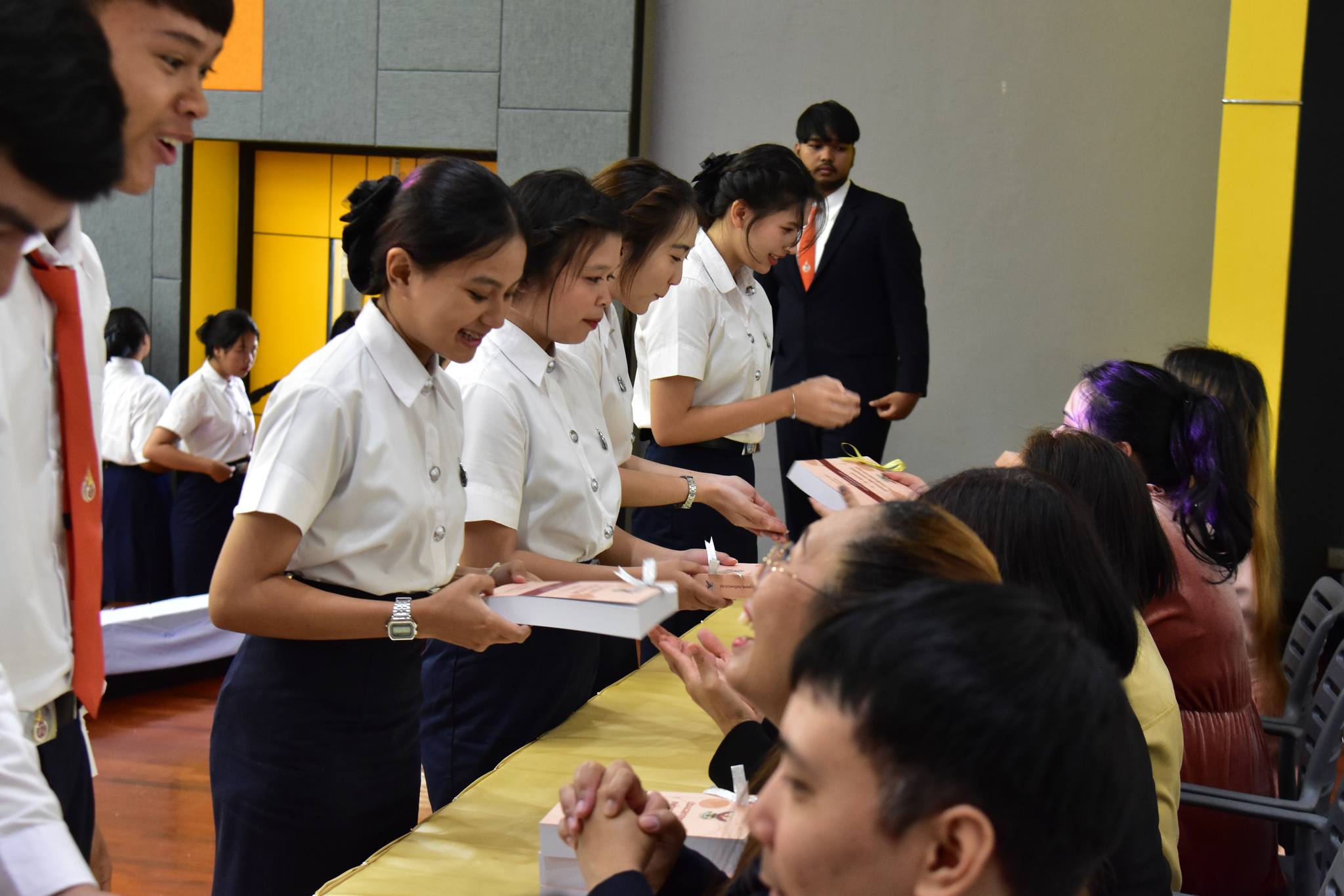 ซึ่งกิจกรรมดังกล่าว ผู้บริหาร คณาจารย์ในหลักสูตรนิติศาสตร์ ได้มอบประมวลกฎหมายแพ่งและพาณิชย์ให้กับนักศึกษาปีที่ 1 เปรียบเสมือนเป็นการมอบศาสตราวุธทางปัญญาที่นักศึกษาปี 1 ได้นำมาใช้ประโยชน์ในเส้นทางนักกฎหมาย และยังมีกิจกรรมผูกข้อมือให้กับนักศึกษาชั้นปีที่ 1 เพื่อความเป็นสิริมงคลและเพื่อเป็นขวัญกำลังใจในการศึกษาในสำนักวิชา