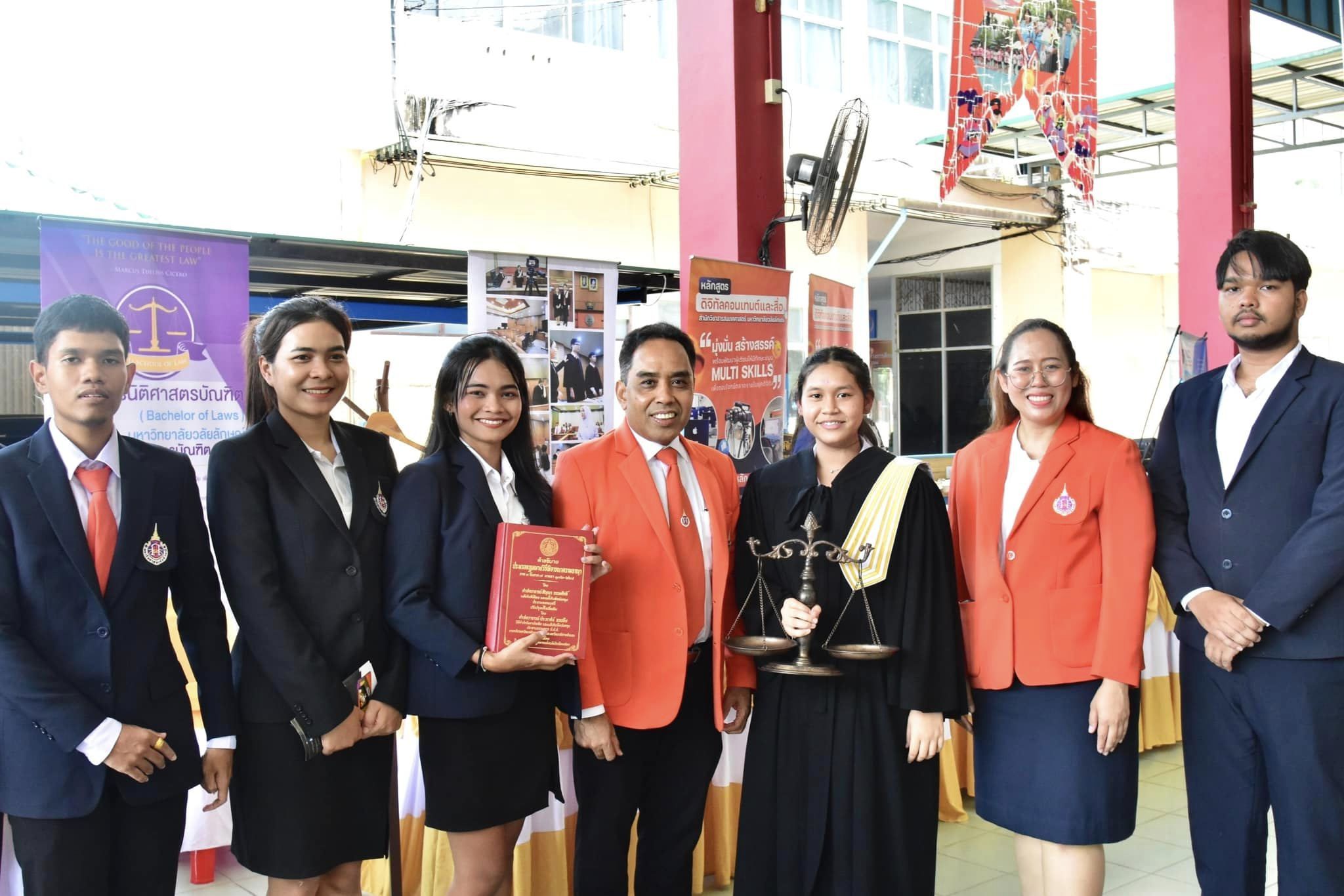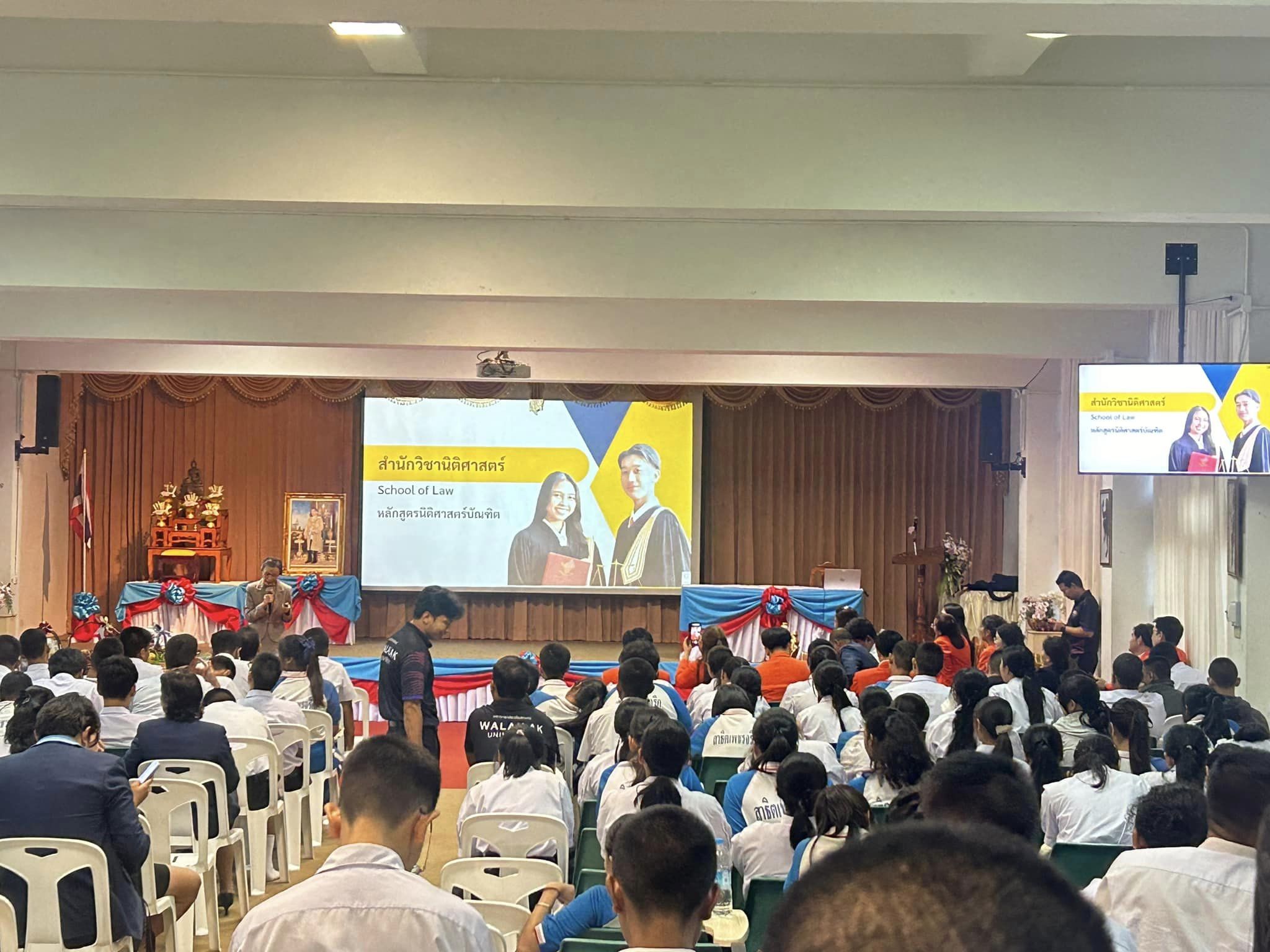 วันที่ 20 มิถุนายน 2567 หลักสูตรนิติศาสตร์ มหาวิทยาลัยวลัยลักษณ์ นำโดย ผศ.ดร.วชิราภรณ์ พวงจินดา รักษาการแทนรองคณบดีสำนักวิชานิติศาสตร์ และตัวเเทนสโมสรนักศึกษาสำนักวิชานิติศาสตร์ ร่วมกิจกรรมประชาสัมพันธ์มหาวิทยาลัยสู่โรงเรียน จัดโดยส่วนสื่อสารองค์กร มหาวิทยาลัยวลัยลักษณ์ ณ โรงเรียนสาธิตเทศบาลวัดเพชรจริก จังหวัดนครศรีธรรมราช