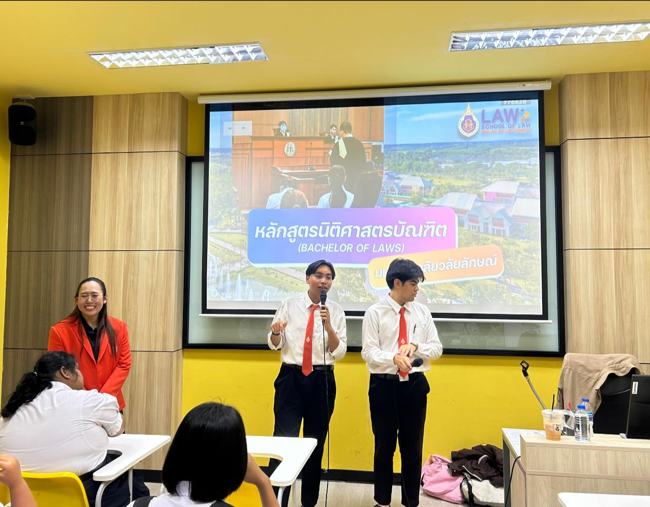 26 กรกฎาคม 2567 คณะผู้บริหาร คณาจารย์ นักวิชาการ สโมสรนักศึกษา และนักศึกษาในหลักสูตรนิติศาสตร์ ร่วมจัดกิจกรรมประชาสัมพันธ์หลักสูตร เเนะนำข้อมูลการเรียนกฎหมายเบื้องต้น รายละเอียดการเตรียมตัวที่ถูกต้อง รวมไปถึงเกณฑ์การรับของหลักสูตรนิติศาสตร์ ตลอดจนการตอบข้อสงสัยต่างๆของน้องมัธยม ณ อาคารเรียนรวม (ST) มหาวิทยาลัยวลัยลักษณ์