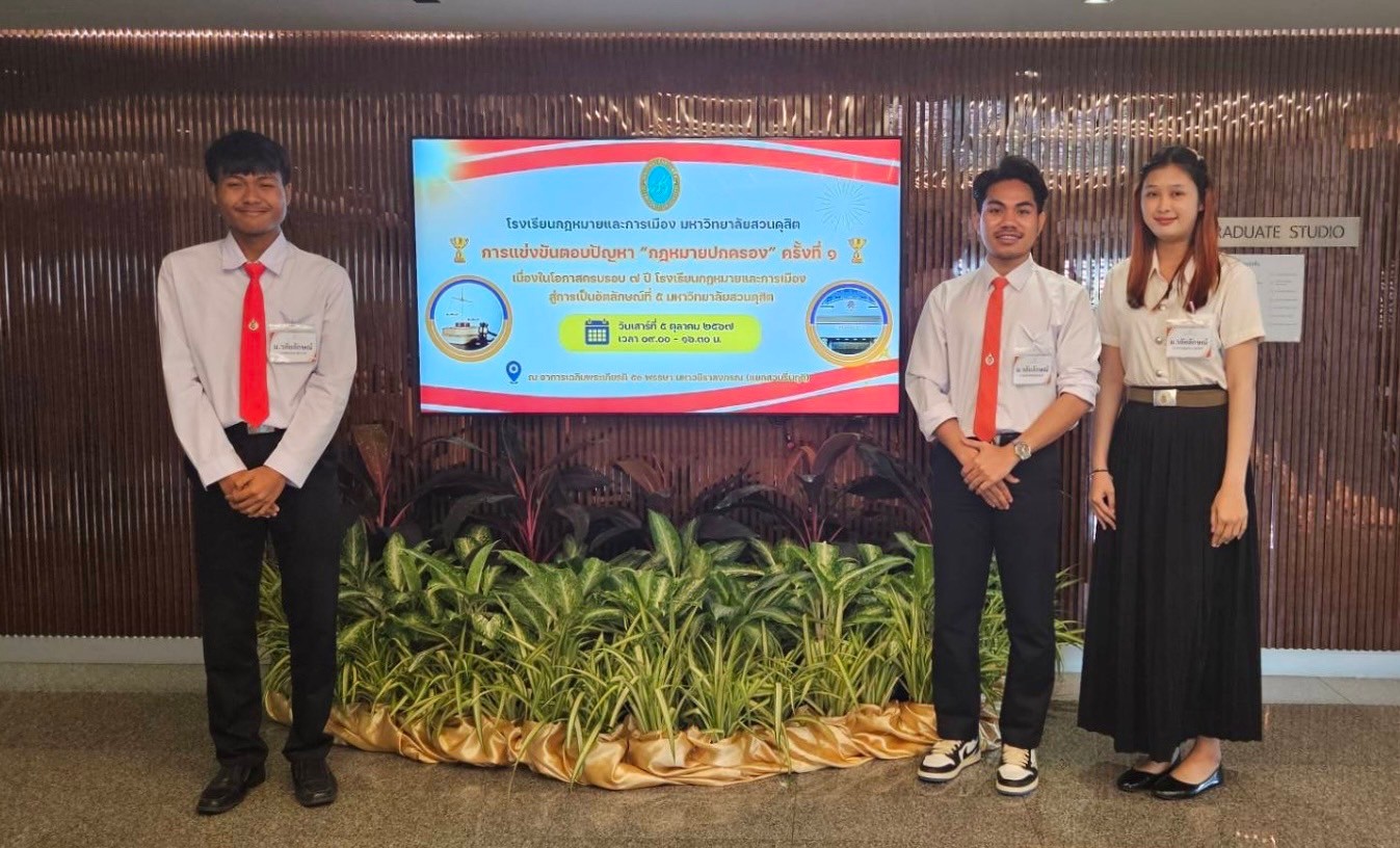 เมื่อวันที่ 5 ตุลาคม 2567 ตัวเเทนนักศึกษาหลักสูตรนิติศาสตร์ เข้าร่วมการแข่งขันตอบปัญหากฎหมายปกครอง เนื่องในโอกาสครบรอบ 7 ปี การก่อตั้งโรงเรียนกฎหมายและการเมือง มหาวิทยาลัยสวนดุสิต ระดับอุดมศึกษา (ปริญญาตรี) ณ อาคารเฉลิมพระเกียรติ ๕๐ พรรษา มหาวชิราลงกรณ (แยกสวนรื่นฤดี) โรงเรียนกฎหมายและการเมือง มหาวิทยาลัยสวนดุสิต