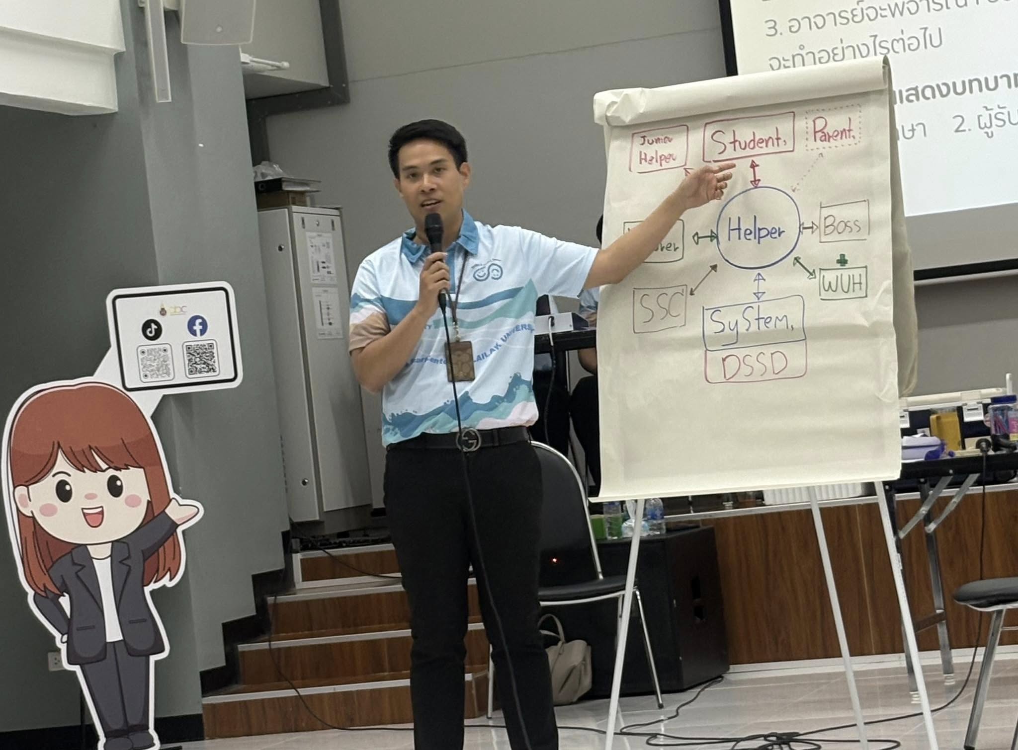 เมื่อวันที่ 13 มีนาคม 2568 อาจารย์ขวัญมณี มณีโชติ ผู้ช่วยคณบดีฝ่ายกิจการนักศึกษา และ อาจารย์ณฏฐพล บัวเงิน ผู้ช่วยคณบดีฝ่ายวิชาการ เข้าร่วมอบรมเสริมสมรรถนะผู้ดุแลให้คำปรึกษานักศึกษา (Helpers) จัดโดยส่วนส่งเสริมและพัฒนานักศึกษา Smile & Smart Center ณ อาคารวิชาการ 3 มหาวิทยาลัยวลัยลักษณ์