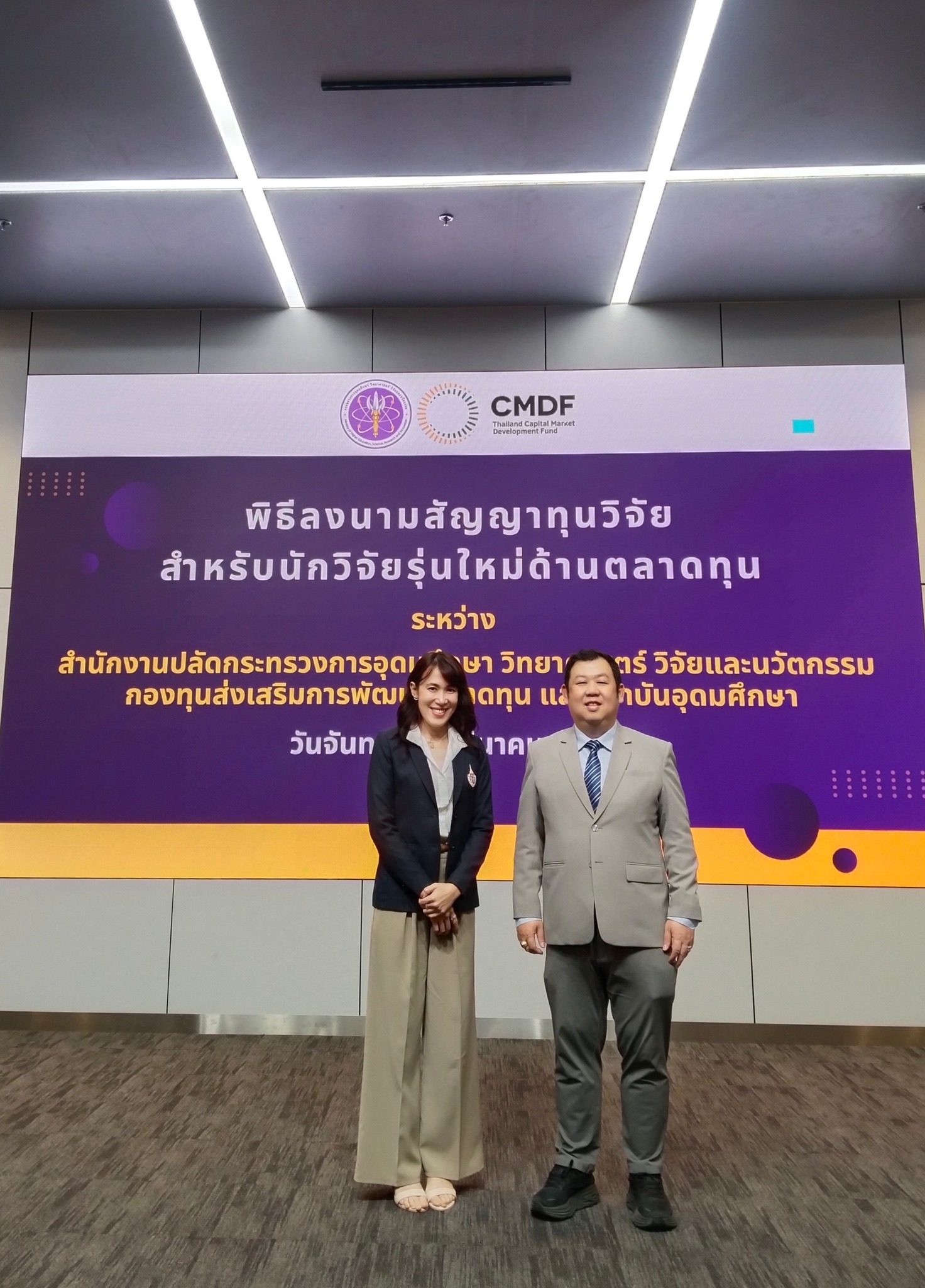 ทั้งนี้ ในพิธีลงนามได้มีการเปิดตัวนักวิจัยรุ่นใหม่ด้านตลาดทุนที่ได้รับทุนจากสำนักงานปลัดกระทรวง อว.และ กองทุน CMDF ประกอบด้วย