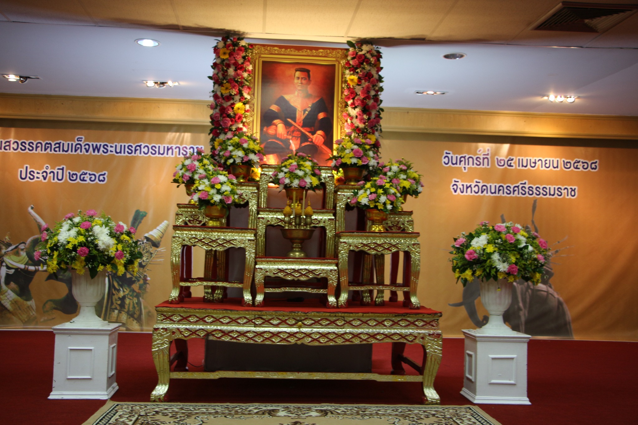 วันที่ 25 เมษายน 2568 รศ.ดร.ศราวุธ ปาลิโภชน์ รองอธิการบดี ในนามเเทนมหาวิทยาลัยวลัยลักษณ์ และ อาจารย์ทวีพร คงเเก้ว รักษาการแทนรองคณบดี พร้อมด้วยบุคลากร ในนามตัวแทนสำนักวิชานิติศาสตร์ มหาวิทยาลัยวลัยลักษณ์ ร่วมพิธีวางพวงมาลาถวายราชสักการะ น้อมรำลึกเนื่องในวันคล้ายวันสวรรคตสมเด็จพระนเรศวรมหาราช ประจำปี 2568 ณ ศาลาประชาคมโรงละครองค์การบริหารส่วนจังหวัดนครศรีธรรมราช
