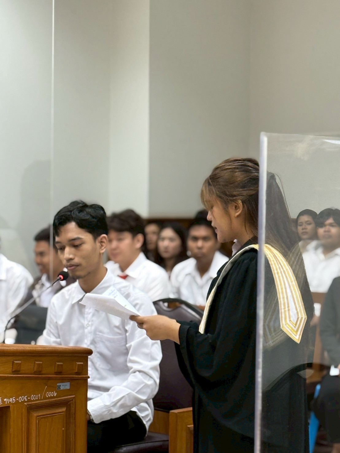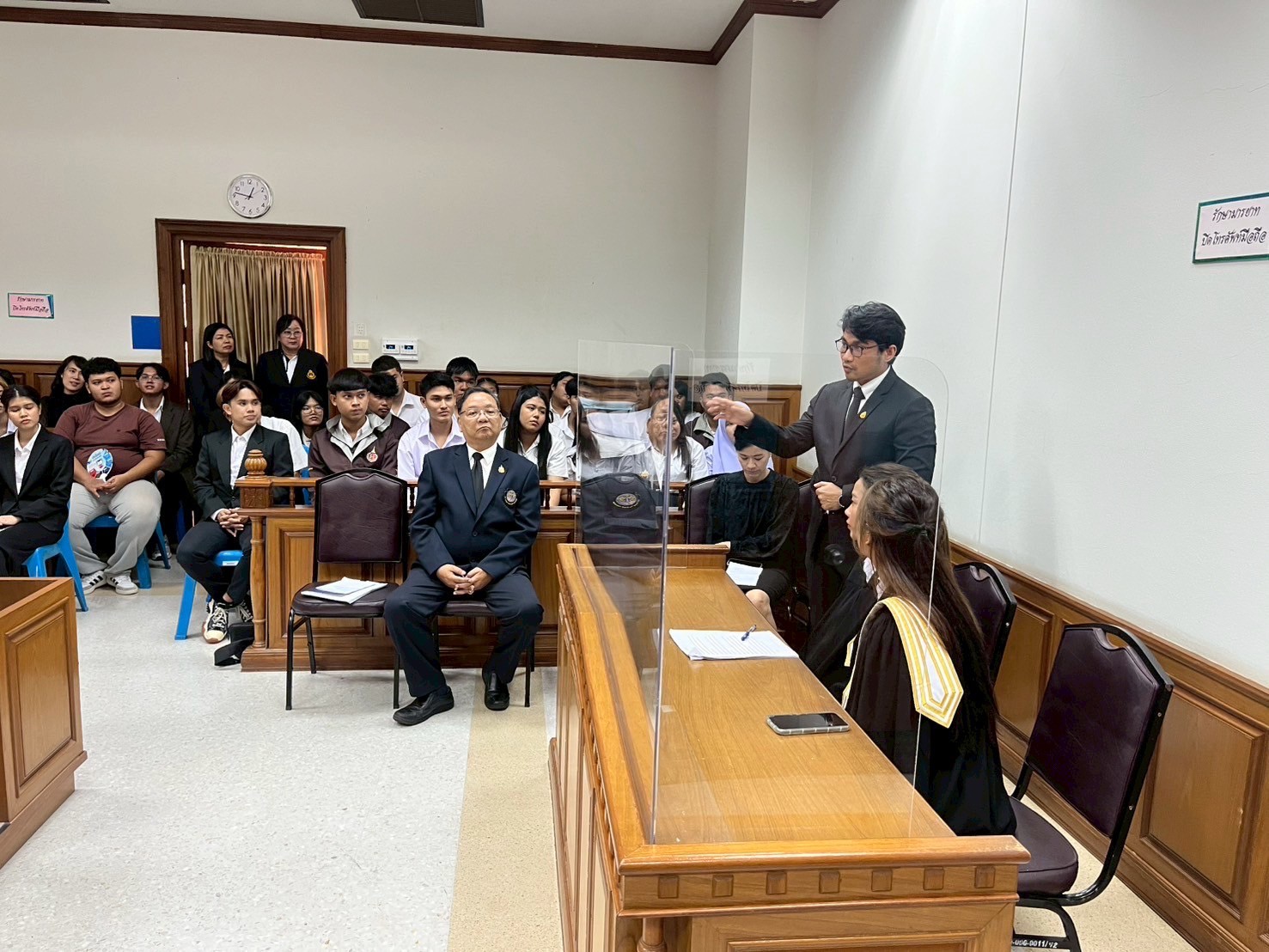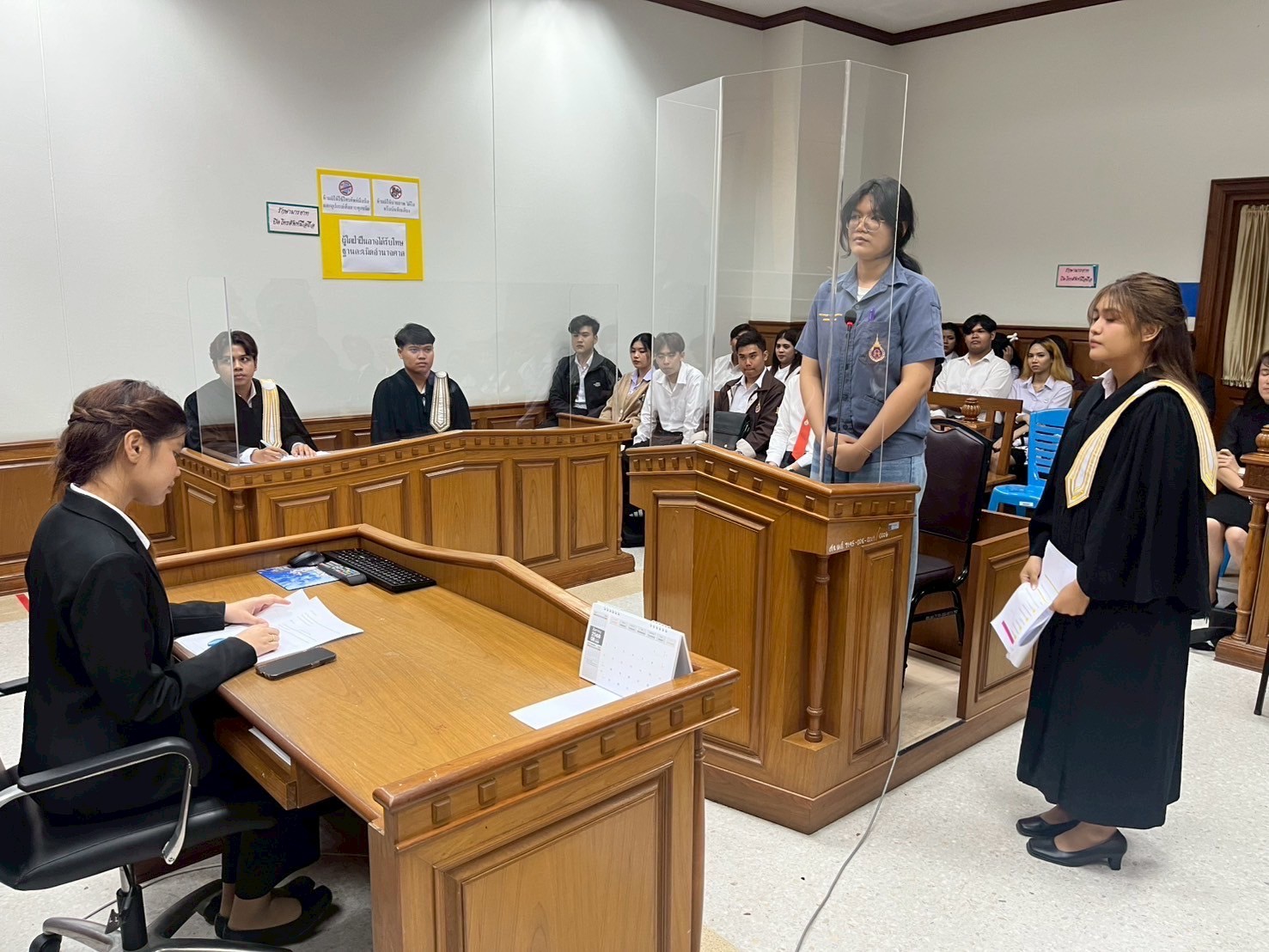 ภายใต้บรรยากาศที่เต็มไปด้วยความตื่นเต้นและตั้งใจจริงของนักศึกษาที่ได้รับบทบาทเป็นผู้พิพากษา ทนายความ พยาน ทั้งฝ่ายโจทก์และจำเลย ในคดีสมมติจำนวน 2 คดี ได้แก่ คดีผิดสัญญาจ้างทำของและเรียกค่าเสียหาย และคดีอาญาในฐานความผิดหมิ่นประมาท ภายใต้การกำกับดูแลโดย