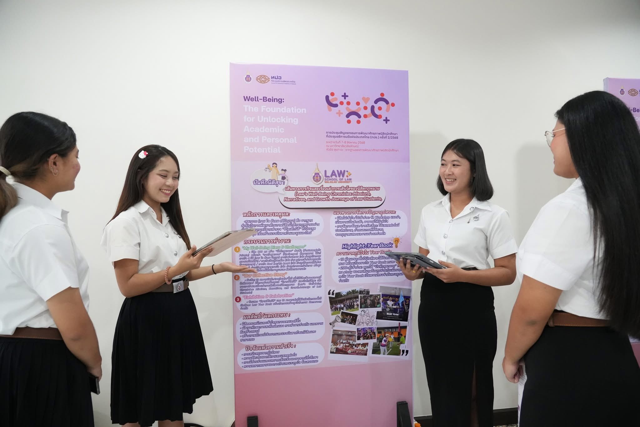 เมื่อวันที่ 8 สิงหาคม 2568 รองศาสตราจารย์ศิวรุฒิ ลายคราม รักษาการหัวหน้าสถานวิจัย เเละนักศึกษา เป็นตัวเเทนสำนักวิชานิติศาสตร์ เข้าร่วมงานประชุมสัญจรคณะกรรมการพัฒนาศักยภาพนิสิต นักศึกษา ที่ประชุมอธิการบดีแห่งประเทศไทย (ทปอ.) ครั้งที่ 2/2568 ณ ห้องประชุมภัทรธรรมาภรณ์ ชั้น 9 อาคาร Bโรงพยาบาลศูนย์การแพทย์ มหาวิทยาลัยวลัยลักษณ์ภายใต้หัวข้อ “สุขภาวะ: รากฐานของการพัฒนานักศึกษา (Well-Being: The Foundation for Unlocking Academic and Personal Potential)” การประชุมครั้งนี้เป็นเวทีแลกเปลี่ยนองค์ความรู้และประสบการณ์ระหว่างสถาบันอุดมศึกษาทั่วประเทศโดยสำนักวิชานิติศาสตร์ได้ร่วมเผยแพร่แนวทางการดำเนินงานด้าน “ระบบดูแลและเสริมสร้างศักยภาพนักศึกษาให้เก่ง ดี มีความสุข” ซึ่งเป็นหนึ่งในกลไกสำคัญที่ส่งเสริมให้นักศึกษาเติบโตอย่างรอบด้านทั้งทางวิชาการ จริยธรรม และคุณภาพชีวิต