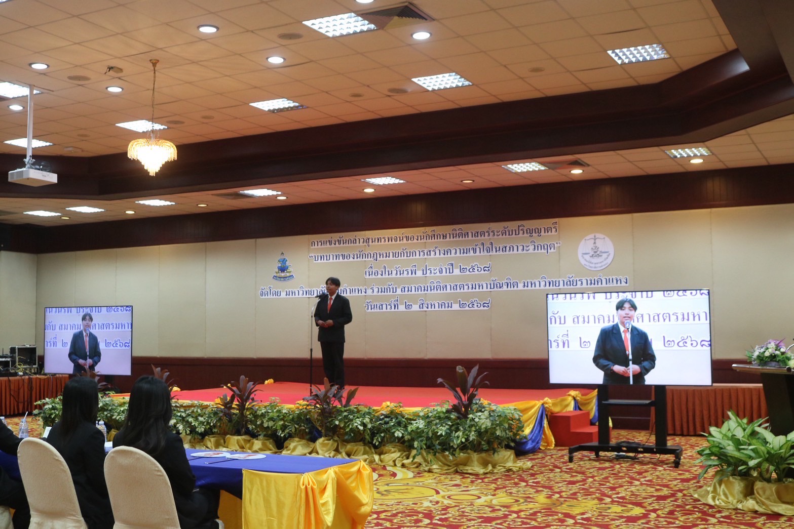 เมื่อวันที่ 2 สิงหาคม 2568 ที่ผ่านมา ตัวแทนนักศึกษานิติศาสตร์จากมหาวิทยาลัยวลัยลักษณ์ ได้เข้าร่วมการแข่งขันการกล่าวสุนทรพจน์ระดับปริญญาตรี ในหัวข้อ “บทบาทของนักกฎหมายกับการสร้างความเข้าใจในภาวะวิกฤต” ซึ่งจัดขึ้นอย่างยิ่งใหญ่ ณ ห้องประมวล กุลมาตย์ และห้องประภาส อวยชัย อาคารหอประชุมพ่อขุนรามคำแหงมหาราช โดยความร่วมมือของมหาวิทยาลัยรามคำแหงและสมาคมนิติศาสตรมหาบัณฑิต มหาวิทยาลัยรามคำแหง
