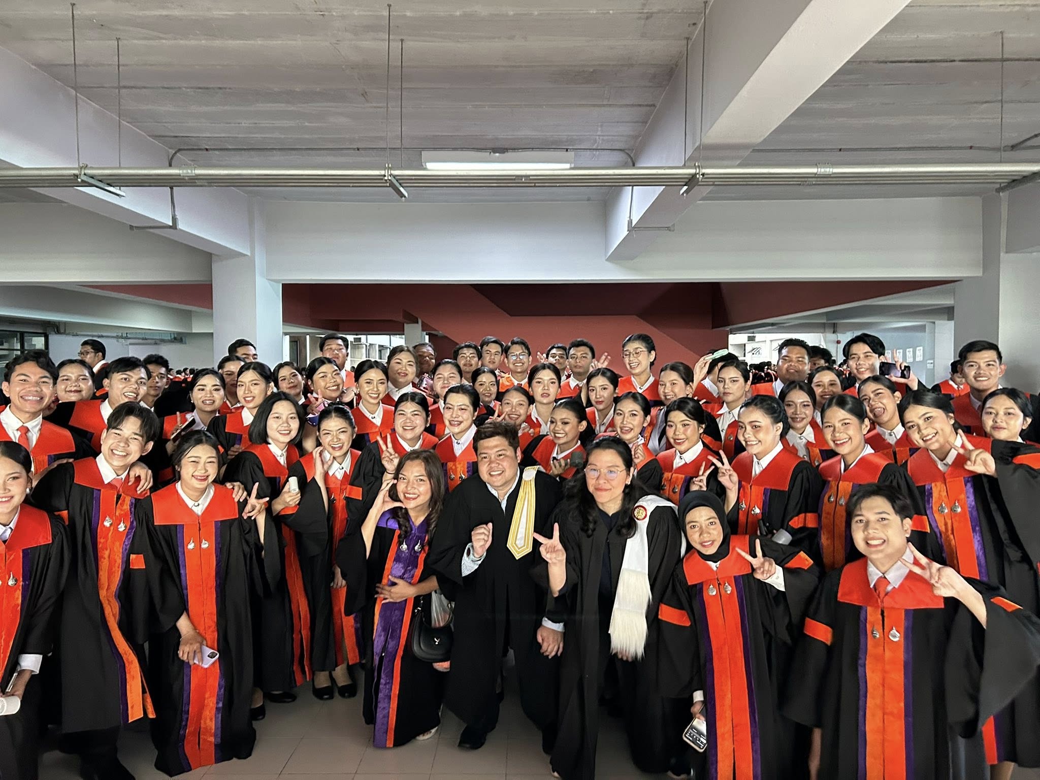 เมื่อวันที่ 25 กันยายน 2568 (วันซ้อมใหญ่ก่อนรับปริญญา) สำนักวิชานิติศาสตร์ มหาวิทยาลัยวลัยลักษณ์ นำโดย รองศาสตราจารย์ นเรศร์ เกษะประกร รักษาการแทนคณบดี สำนักวิชานิติศาสตร์ พร้อมด้วยคณาจารย์และบุคลากรได้ร่วมแสดงความยินดีและให้โอวาทแก่บัณฑิตในบรรยากาศอบอุ่นและเปี่ยมด้วยความหมาย