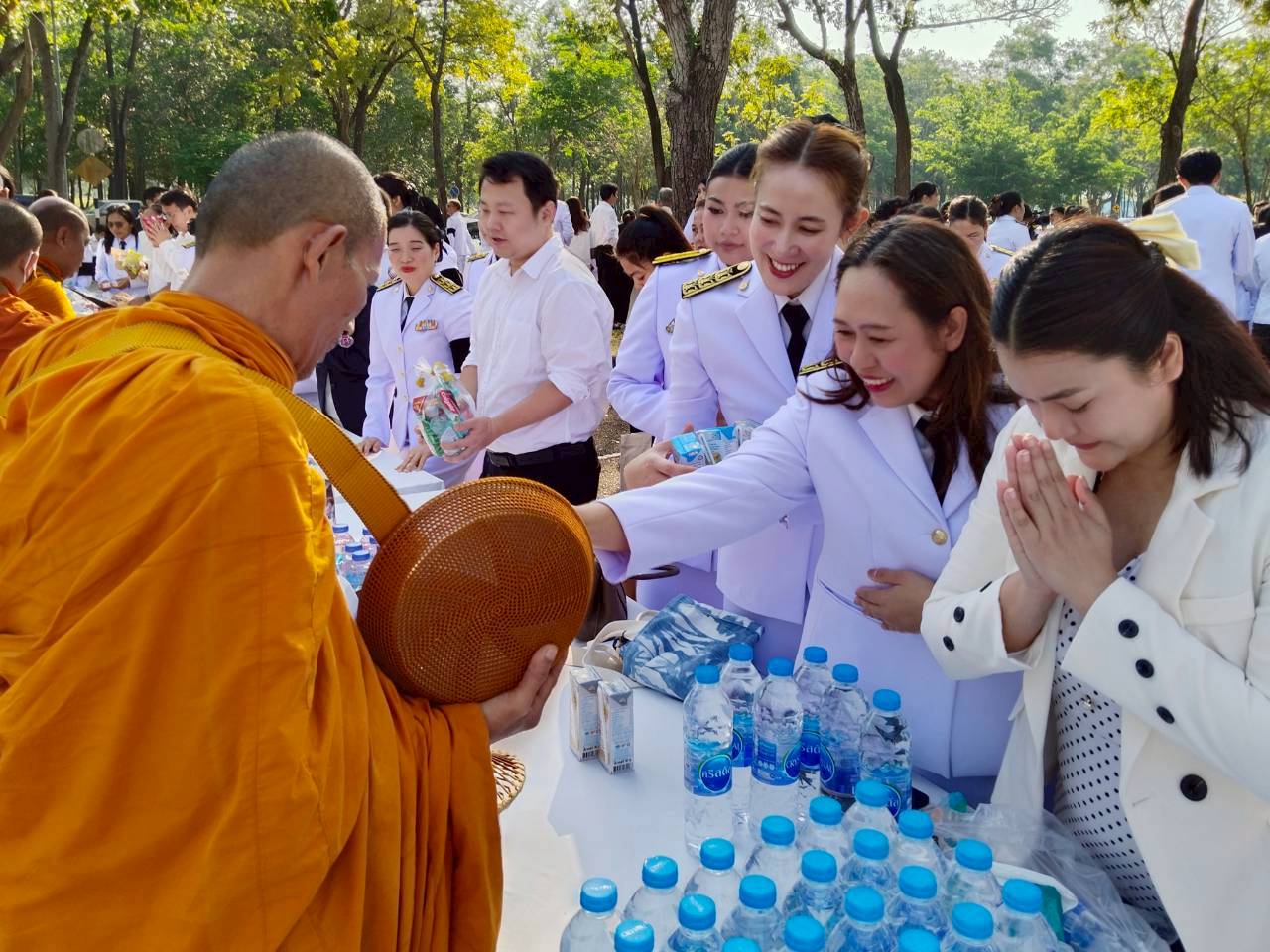 โดยได้เข้าร่วมพิธีทำบุญตักบาตรข้าวสาร อาหารแห้ง แด่พระภิกษุสงฆ์ จำนวน 34 รูป ณ อาคารไทยบุรี มหาวิทยาลัยวลัยลักษณ์ เพื่อความเป็นสิริมงคลและสืบสานขนบธรรมเนียมอันดีงามของไทย